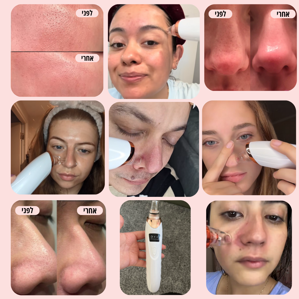 המכשיר יוצר ואקום עדין שמושך החוצה את השחורים, השומן והלכלוך שהצטברו עמוק בתוך הנקבוביות.