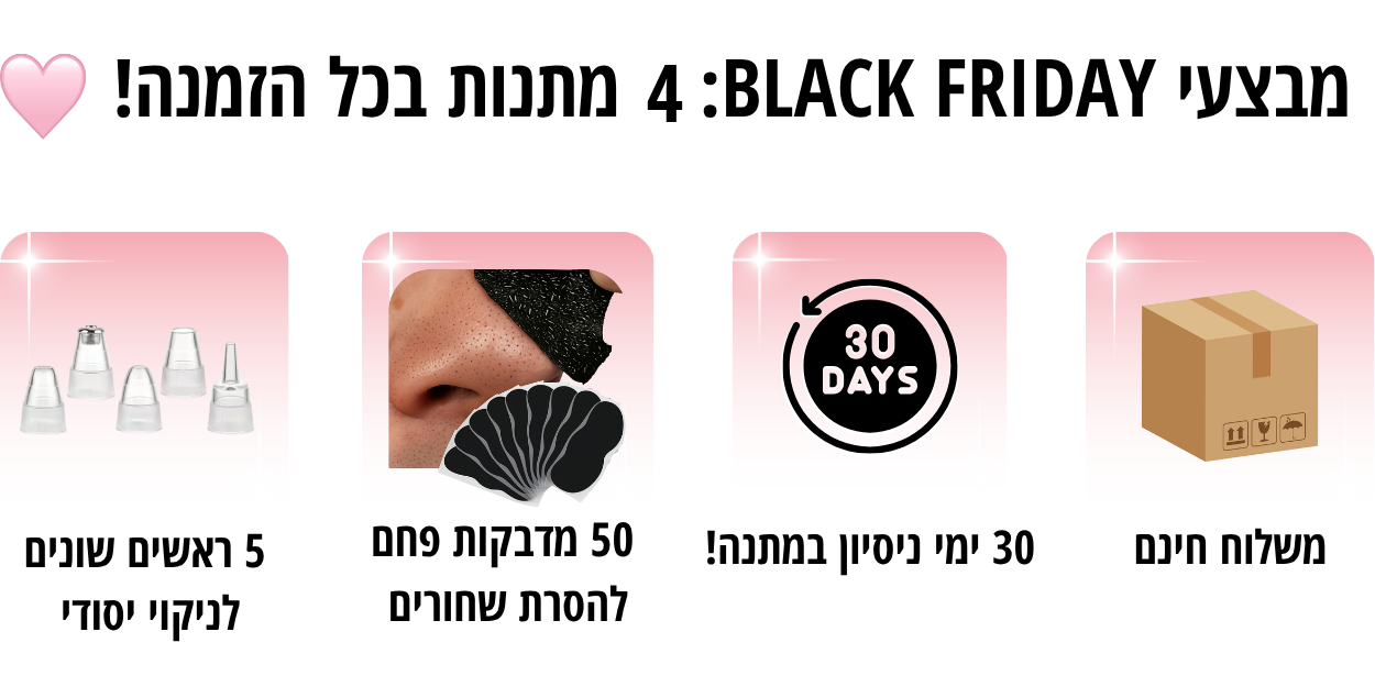 עכשיו תארי לעצמך מכשיר ששואב את השחורים מהשורש, בעדינות מקצועית ובטיחותית.